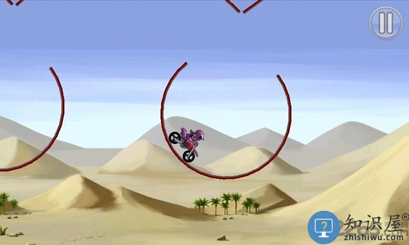 游戏的控制方法非常简单,右手按住屏幕启动加速,左手急刹(没有倒退),此外,还需通过设备的重力感应来调整摩托车的平衡,它可以前倾或者后仰,这取决于你脚下的路。
