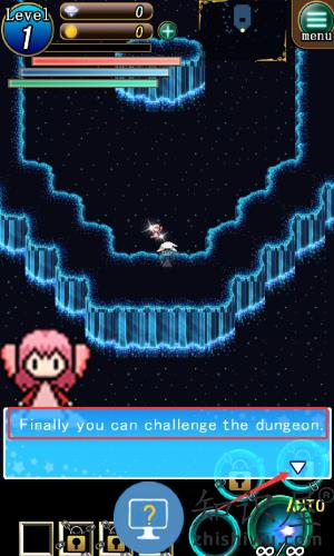 2、通过快速滑动与点击操作移动角色,在地牢环境中自由探索。