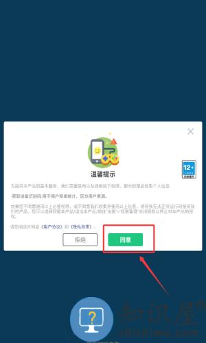 1、阅读温馨提示后,点击红框标注的绿色同意按钮继续。