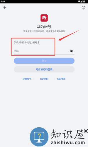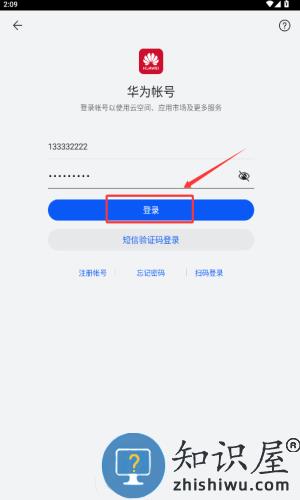 2、在华为账号登录页输入手机号和密码,准备登录。