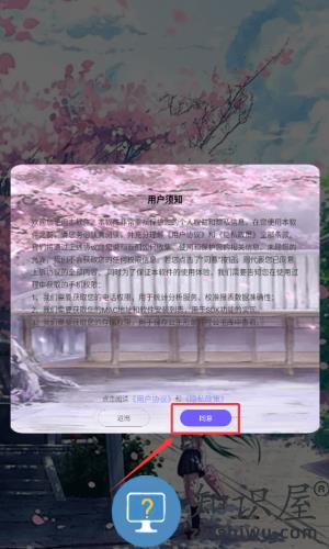 1、阅读用户须知后,点击红框标注的紫色同意按钮继续。