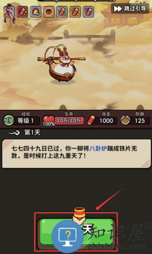 2、阅读剧情后点击红框标注的绿色下一天按钮,推进游戏进度。