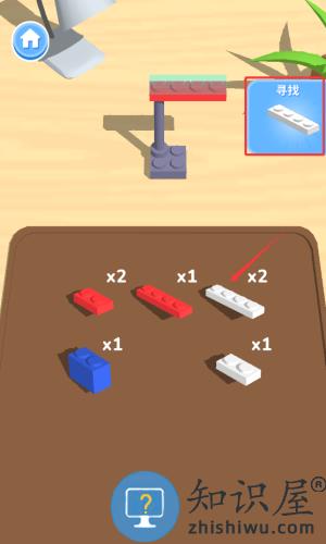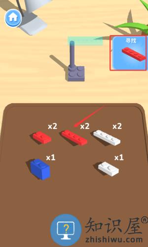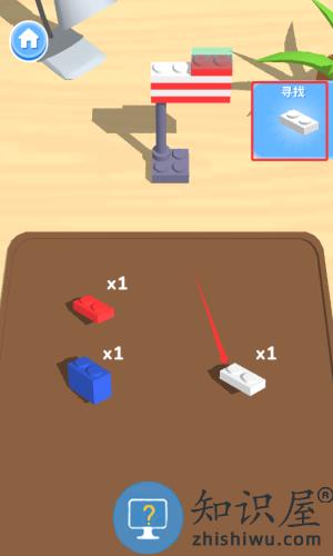1、根据红框提示寻找白色积木,点击目标完成收集。