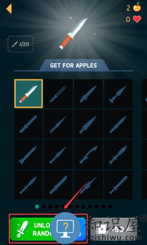 1、点击红框标注的匕首图标,花费苹果解锁随机道具。