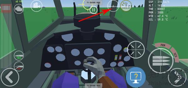点击飞机按钮进行切换第三人称和第一人称视角。