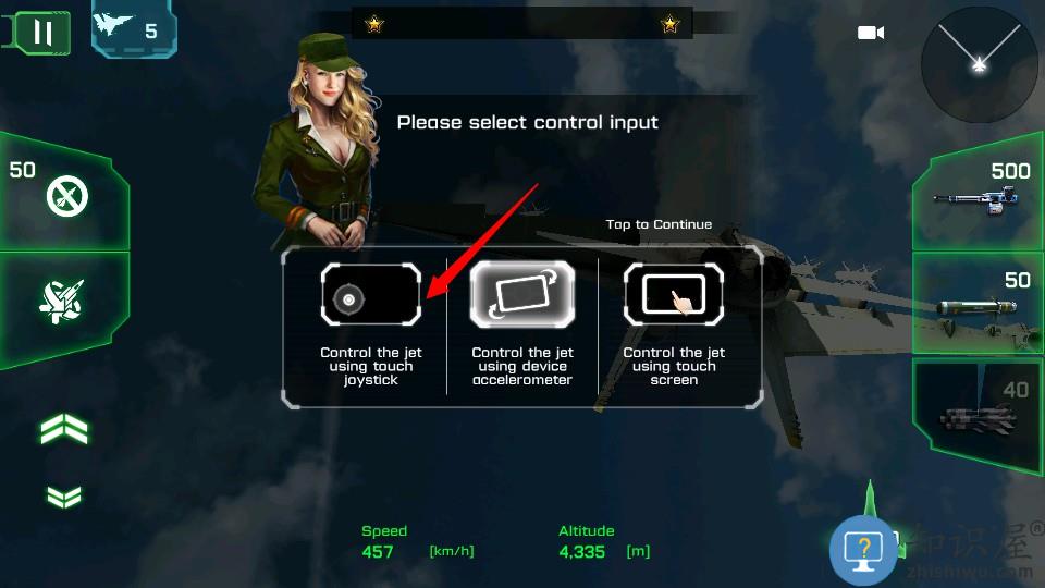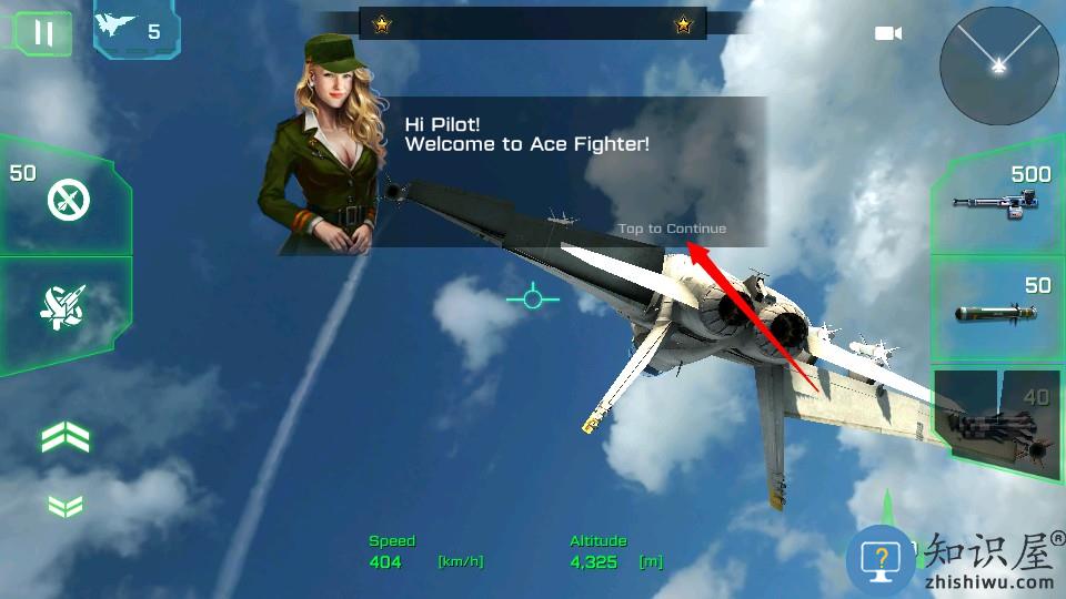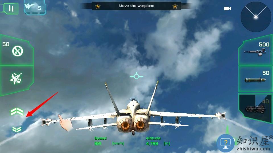 2、点击屏幕右侧发射机炮持续攻击锁定敌方战斗机目标。