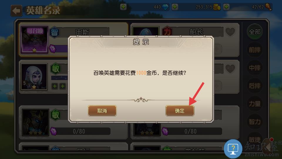 3、点击确定花费1000金币即可召唤英雄。