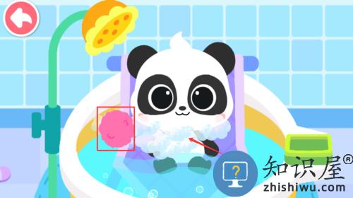 3、点击红框沐浴球,给熊猫涂抹泡泡洗澡。