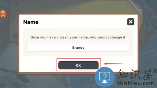 2、在名称输入框输入角色名,点击红框OK按钮确认。