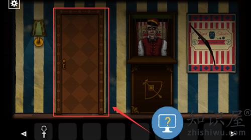 3、根据红框箭头提示,打开棕色木门进入房间。