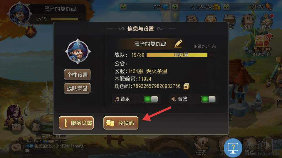 2、点击下方的兑换码。