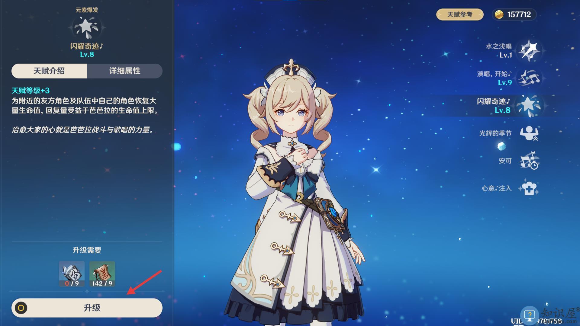 2、天赋推荐升级顺序:元素战技 > 元素爆发 > 普通攻击。