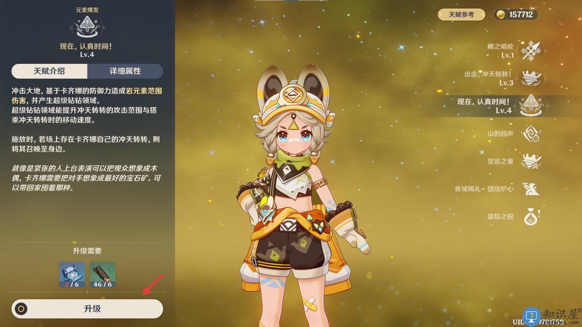 2、天赋推荐升级顺序:元素战技 > 元素爆发 > 普通攻击。