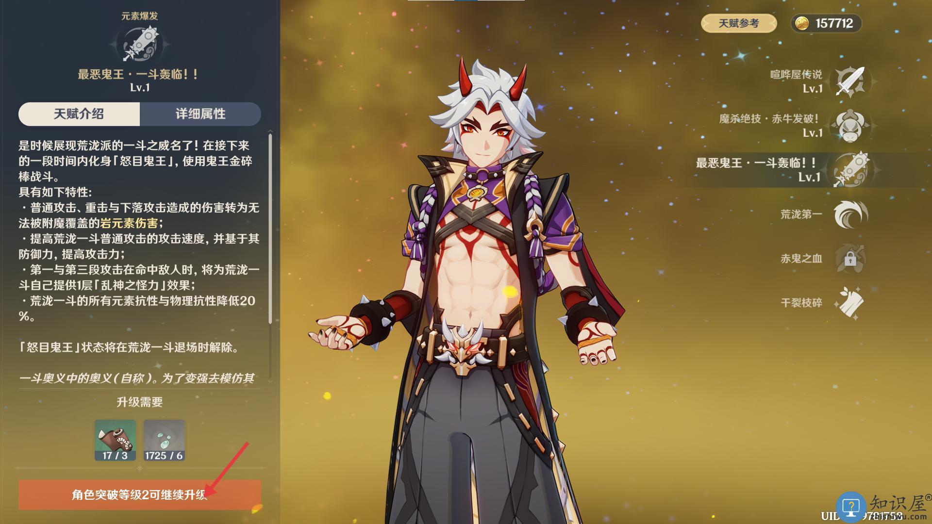 2、天赋推荐升级顺序:普通攻击>元素爆发>元素战技。