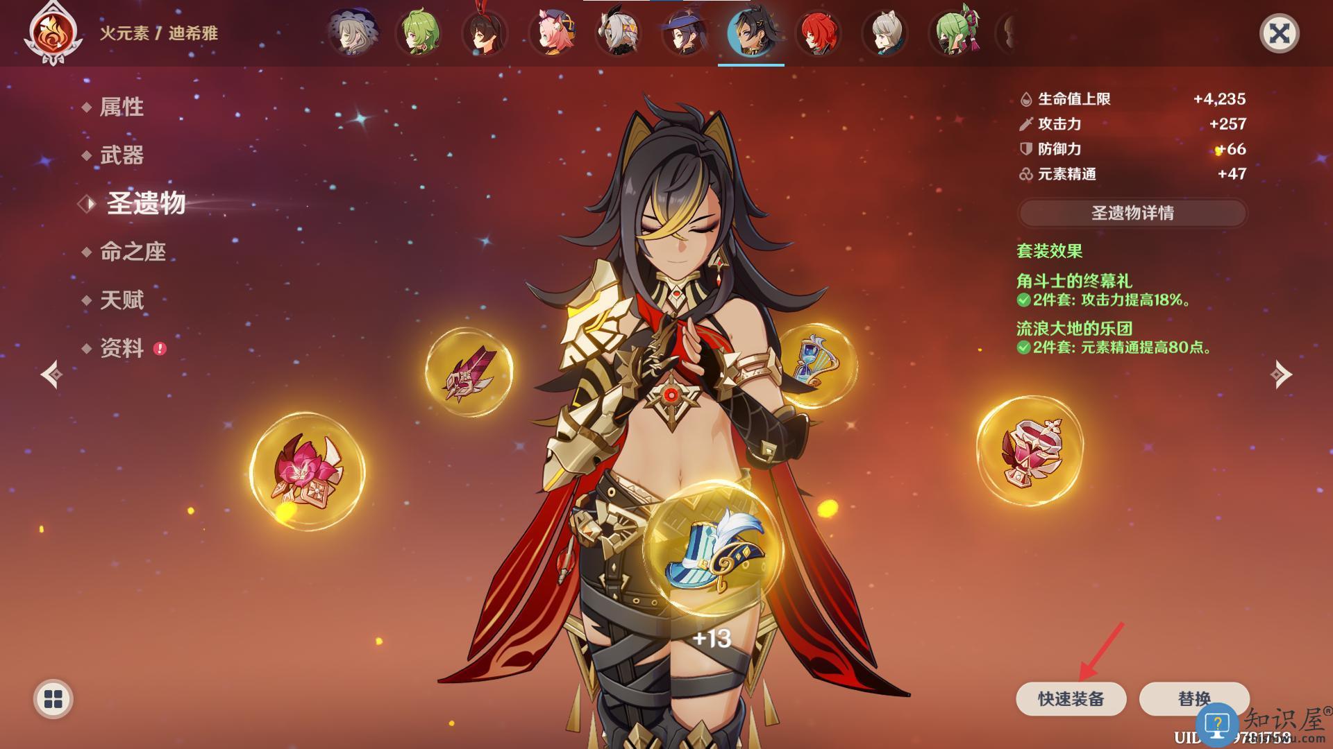 3、圣遗物推荐千岩牢固4件套或绝缘之旗印4件套。