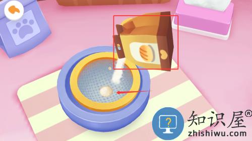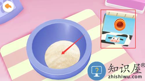 3、将红框面粉碗放入奶牛纸盒,准备原料加工。