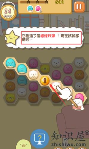 2、根据红框提示移动线条炸弹,尝试拖拽操作。