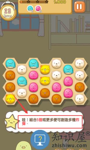 3、查看红框内炸弹说明,组合五个以上可产生特殊效果。