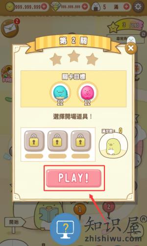 2、在关卡界面点击红框箭头指向的PLAY按钮,开始第二关挑战。