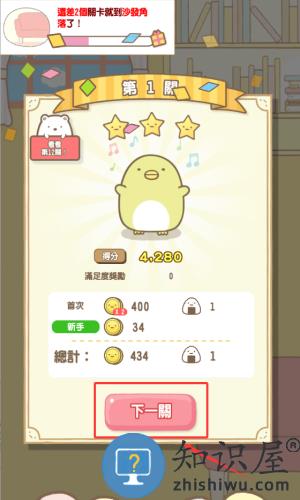 3、查看得分后点击红框下一关按钮,继续游戏。