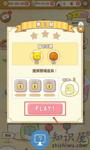 1、点击红框标注的粉色PLAY按钮,开始收集12个猫咪和熊头像。