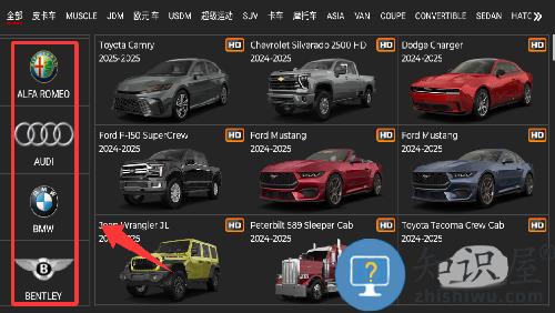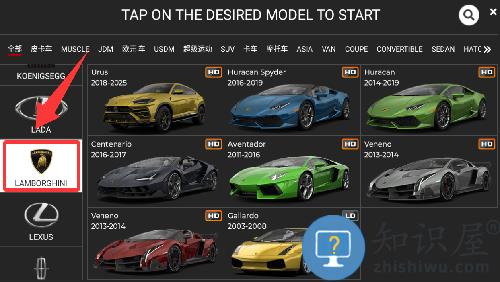1、进入游戏点击左下角往下滑有好多品牌的车子挑选。