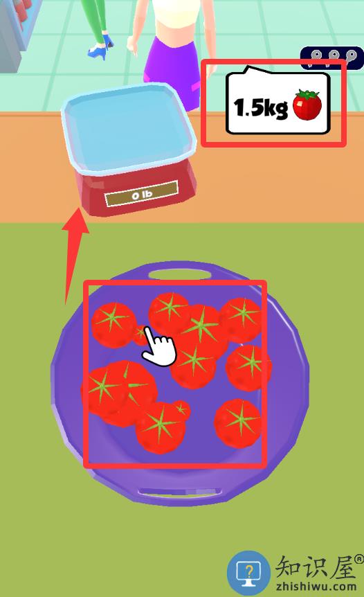 2、这位顾客想拿1.5KG的西红柿把它称一下。