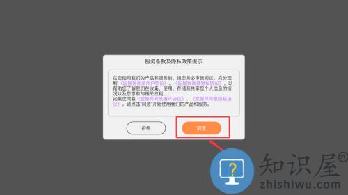 1、阅读服务条款后,点击红框标注的橙色同意按钮继续。