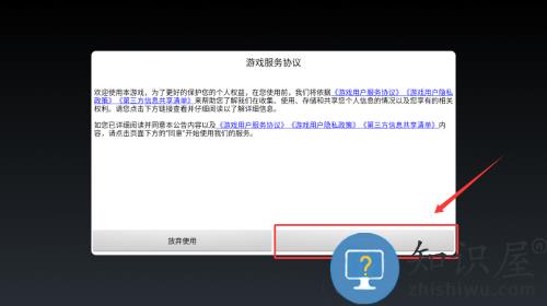 1、阅读游戏服务协议后,点击红框标注的同意按钮继续。