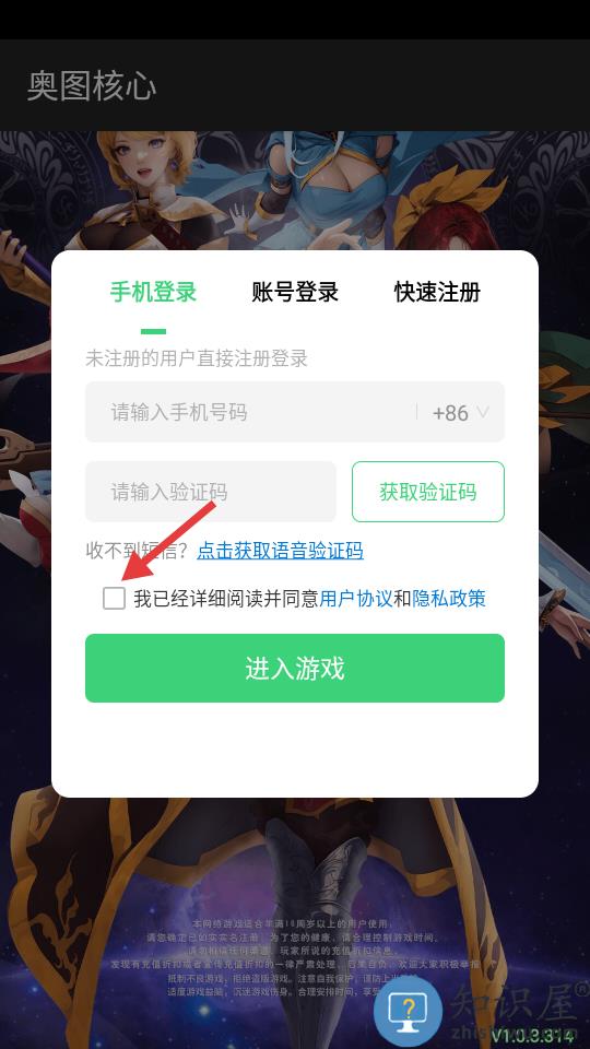 1、勾选同意协议后输入手机号验证码登录。