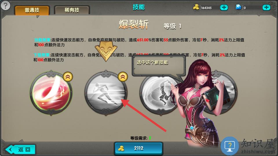 2、选中需要升级的技能。