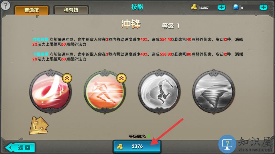 3、点击下方花费金币升级。