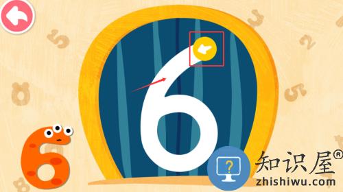 3、点击红框标注的黄色脚印,学习数字6的写法。