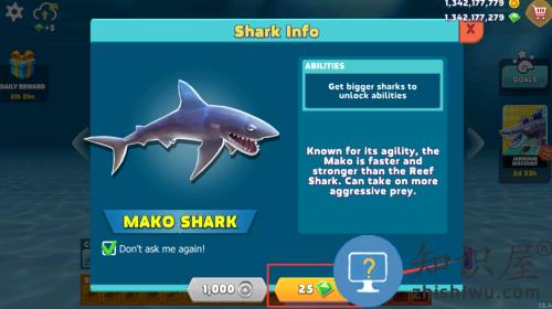 1、点击红框标注的25购买按钮,消耗金币购买鲨鱼。