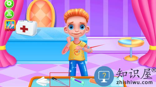 3、选择红框急救箱内的医疗道具,为病人处理伤口。