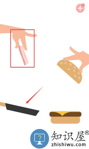 4、你需要想办法将培根甩到对面的盘中、杯中即可,但甩久培根凉了就不好吃了,甩地上脏了也不行的哦。