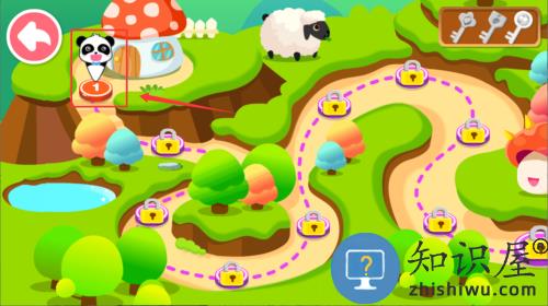 1、点击红框箭头指向的熊猫角色,选择关卡1开始冒险。