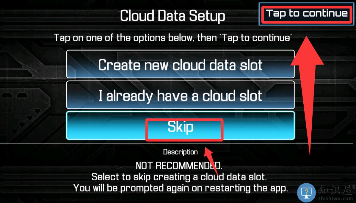 2、点击红色框框里的跳过并继续。