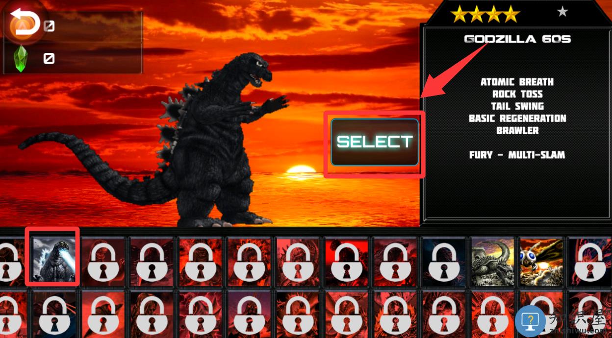 接下来选择你的哥斯拉角色。