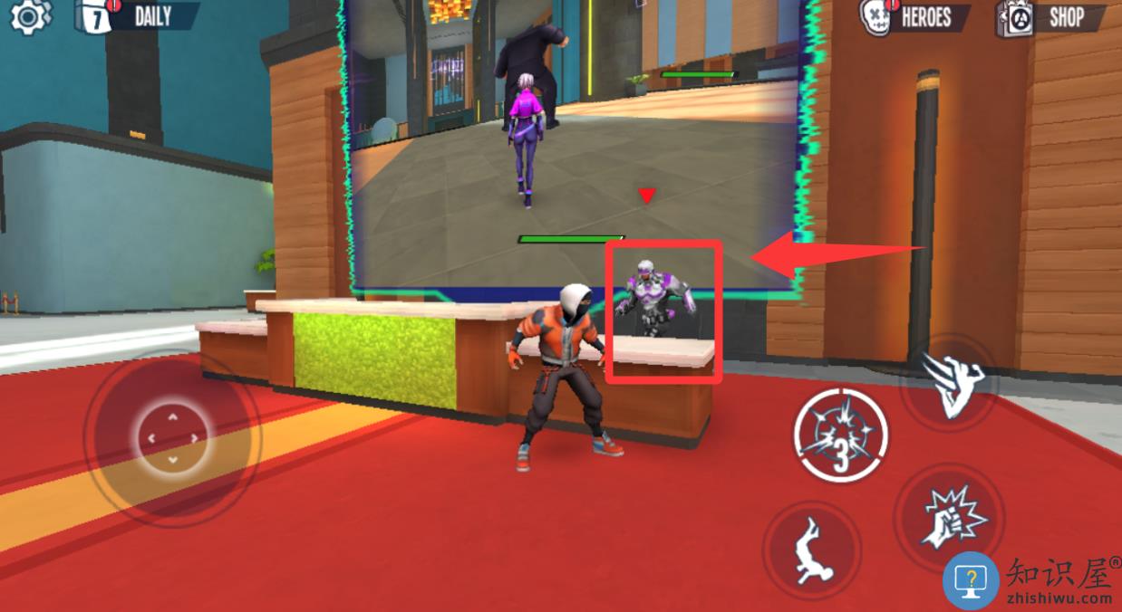 2、进入游戏把红色框框里的坏人打败。