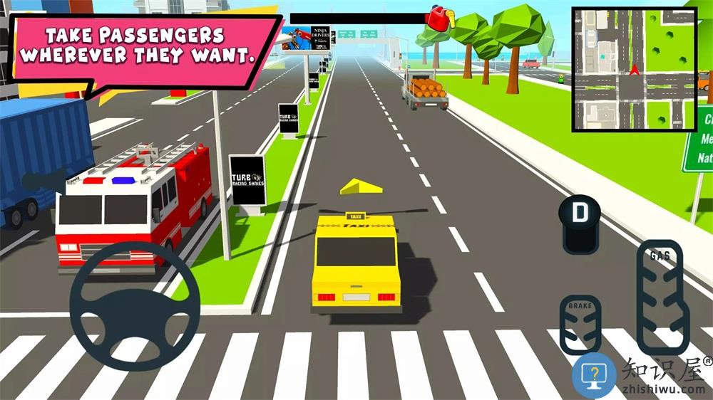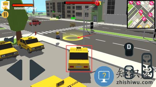 3、操控红框内的出租车,根据小地图提示完成载客任务。