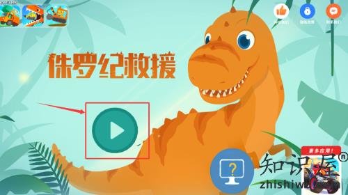 1、点击红框箭头指向的绿色播放按钮,开始侏罗纪救援游戏。
