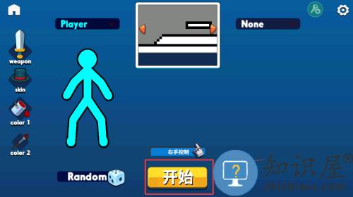 2、使用红框标注的蓝色摇杆,控制火柴人角色移动。