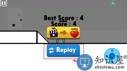 3、游戏结束后点击红框标注的蓝色Replay按钮重新开始。