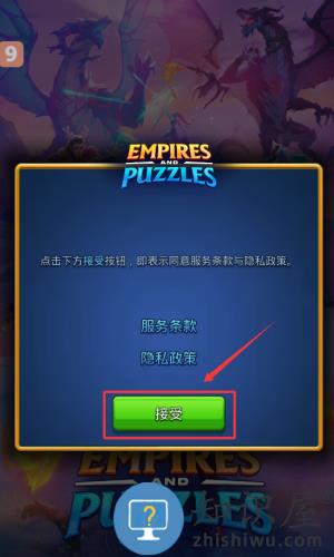 1、阅读服务条款后,点击红框标注的绿色接受按钮继续。