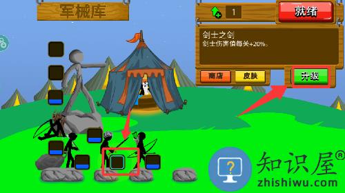 2、然后再点击剑士之剑把它升级增加伤害值。