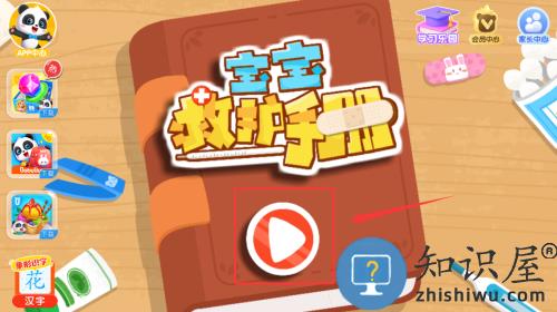 2、在主界面点击红框标注的红色播放按钮,开始救护手册游戏。