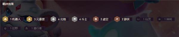 开局我们选择卖血去拿反曲弓,因为阵容最少需要3把反曲弓。之后直接用北地斗士即可,装备直接就合成给雷霆之主。到七级把雷霆之主搜到3星,之后上8级找到灵鸟毕方凑出4北地三元素4斗士羁绊,此时阵容算是大成。如果有拉九级的经济可以上九级挂上虚空之女拼凑出2虚空和2游侠羁绊。