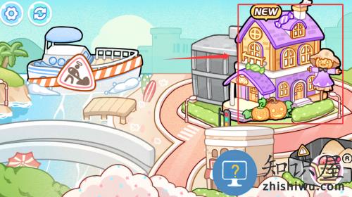 2、根据红框箭头提示,点击紫色房屋进入场景。
