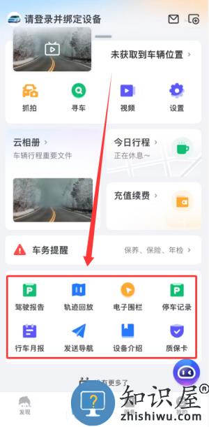 3、设备板块提供驾驶分析、行程回溯、电子围栏、停车记录及远程导航等功能。